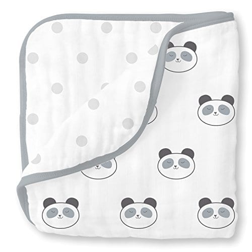 SwaddleDesigns 4-Layer Cotton Muslin Luxe Blanket, Baby and Toddler Cuddle and Dream, 46×46 inches, Black Panda and Dots
