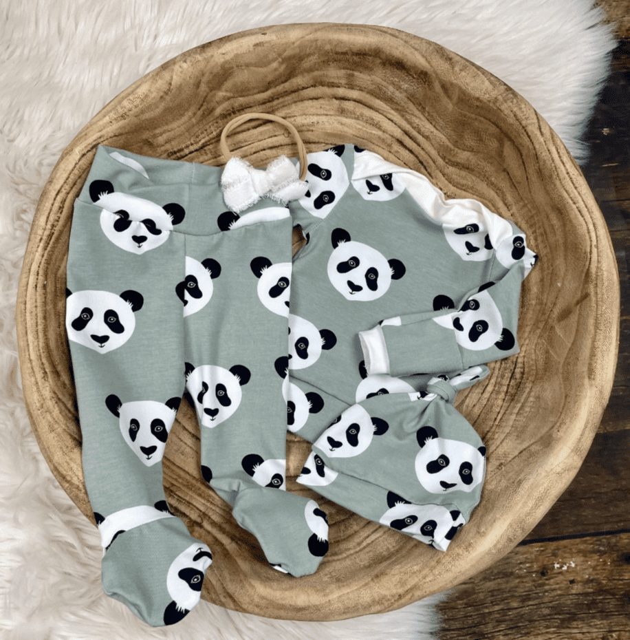 Available in a range of sizes to fit premies up to 9 months. Pieces of the set can be purchased separately, starting with just the pants & top. All pieces together cost $58.