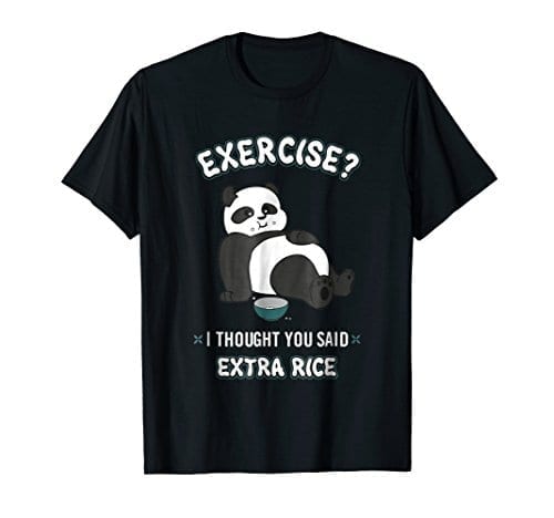 Funny Panda T-Shirt shows a cute looking kawaii style graphic of a cuddly panda eating too much sushi saying Exercise I Thought You Said Extra Rice. If you love animals and pandas as your spirit animal you should get your Sushi Panda Shirt now!