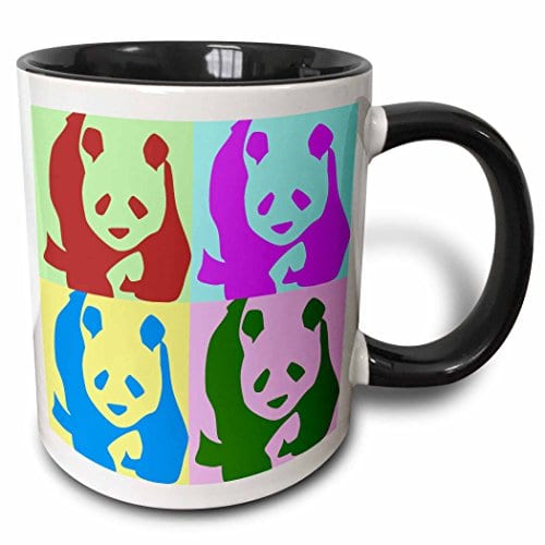 PS Creations – Colorful Pandas – Fun Animal Art – 11oz Two-Tone Black Mug (mug_51439_4)