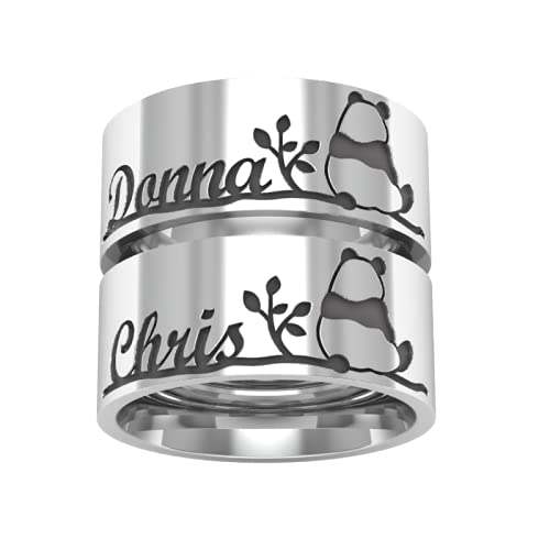 Sterling Silver Panda Bear Ring, Personlized Panda Ring, Panda Jewelry,Panda Band Rings with Names